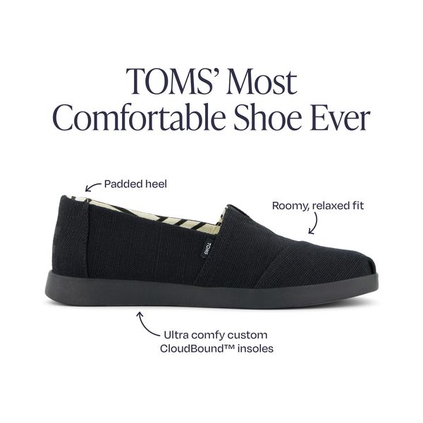 The Alpargata Plus—the most comfortable shoe we’ve ever made, featuring a roomy fit, sleek black uppers and custom CloudBound™ insoles that feel light and airy on your feet. See the world in the shoe designed to leave an impact.Heritage Canvas upper made primarily with jute—a preferred eco-fiber that requires less water and fewer chemicals to grow.
