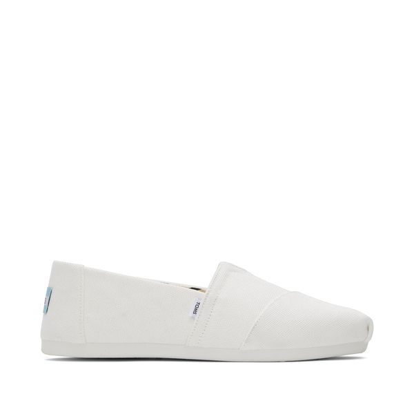 White Recycled Cotton Canvas, 10017739TOMS run true to size and are available in medium width only. We recommend ordering the size you normally wear. If you are typically in between sizes, we recommend going with the smaller one since TOMS will stretch slightly as you break them in.