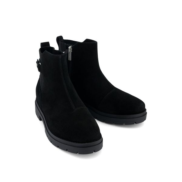 Meet the utility-inspired boot with a polished aesthetic. Astrid is a durable and lightweight lug boot with sophisticated details like a soft suede upper, cozy knit gore and decorative leather strap with pin hardware details. An effortless style for every day. Suede upper. TOMS leather products support responsible manufacturing via the Leather Working Group.