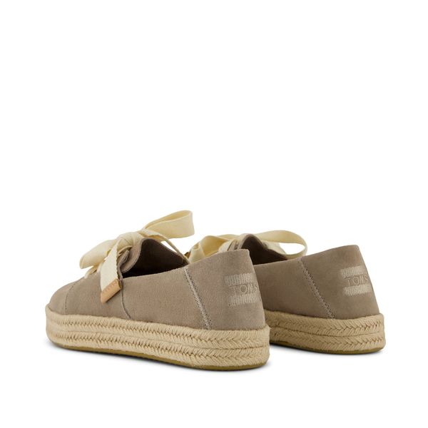 The ultimate feminine slip-on. Our new Carolina Lace-Up features oversized laces, a rope-wrapped platform and chic suede uppers. Lace them up with dresses or jeans for an easy everyday look. Suede upper. TOMS leather products support responsible manufacturing via the Leather Working Group.