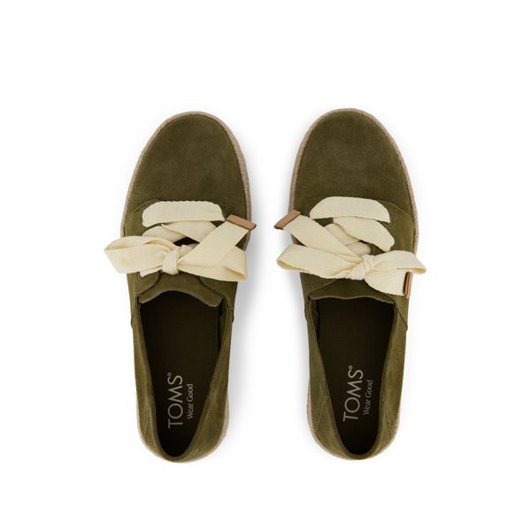 The ultimate feminine slip-on. Our new Carolina Lace-Up features oversized laces, a rope-wrapped platform and chic suede uppers. Lace them up with dresses or jeans for an easy everyday look. Suede upper. TOMS leather products support responsible manufacturing via the Leather Working Group.