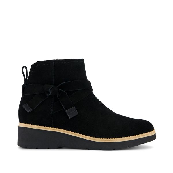 Marlow is your new low wedge boot for effortless, everyday style. Featuring a sleek, water-repellent suede upper with a matching wraparound tie for added dimension and interest. With a 1 ½ inch heel height and lug bottom, you get the perfect amount of lift without sacrificing function. Water-repellent suede upper. TOMS leather products support responsible manufacturing via the Leather Working Group.