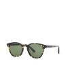 A fresh take on classic round sunglasses, the Wyatt comes to life with tortoiseshell frames, a notched bridge and subtle, silver hardware. Bottle green lenses add a retro feel that protects from UVA and UVB rays.Handcrafted acetate frames.