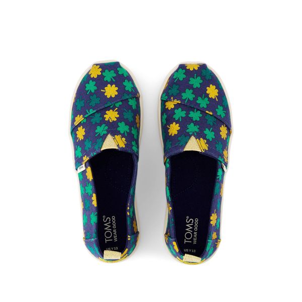 Dress your lucky little one in our classic Alpargata shoes with shimmering shamrocks and four-leaf clovers. The breathable textile uppers and cushy soles are designed for all-day play. With an easy slip-on design, so they’re out the door in a flash.Textile upper with glimmer foil shamrock and clover detailing. Shop styles for the family.
